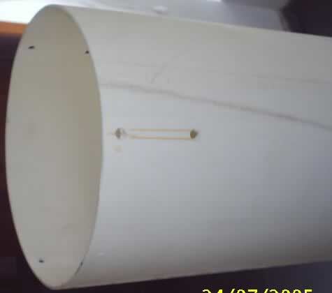 Veja abaixo uma foto do tubo já furado para receber o focalizador, mas ainda sem os furos do parafuso: